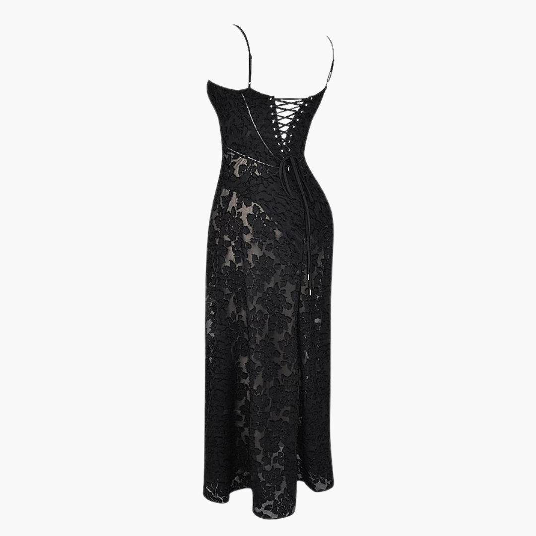 Add an elegant touch to your appearance with this long lace dress in vintage style for women. Whether it’s a gala, wedding, or dinner – the dress impresses with its sophisticated cut, delicate lace details, and a feminine silhouette that radiates timeless style. Ideal for anyone who wants to shine at special occasions.