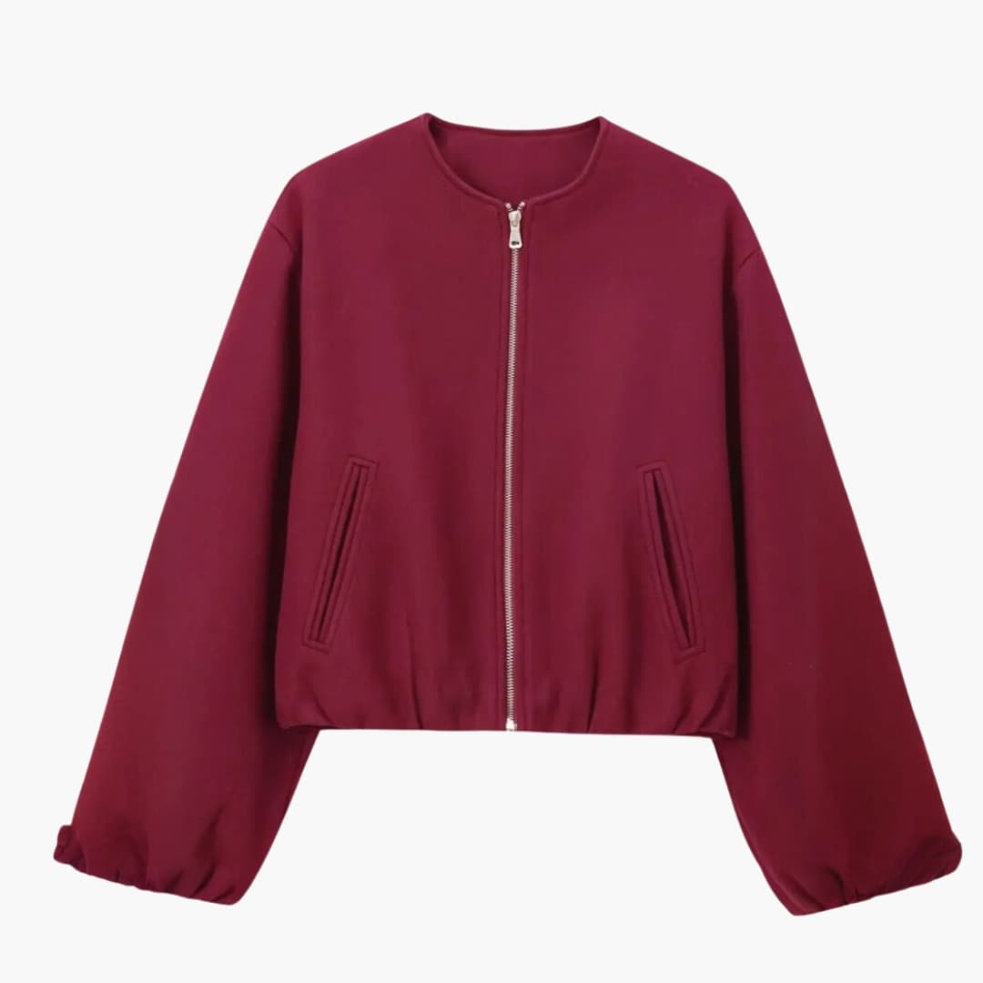Women’s Cropped Jacket with Zipper and Round Neckline.