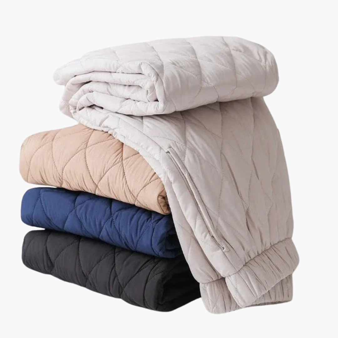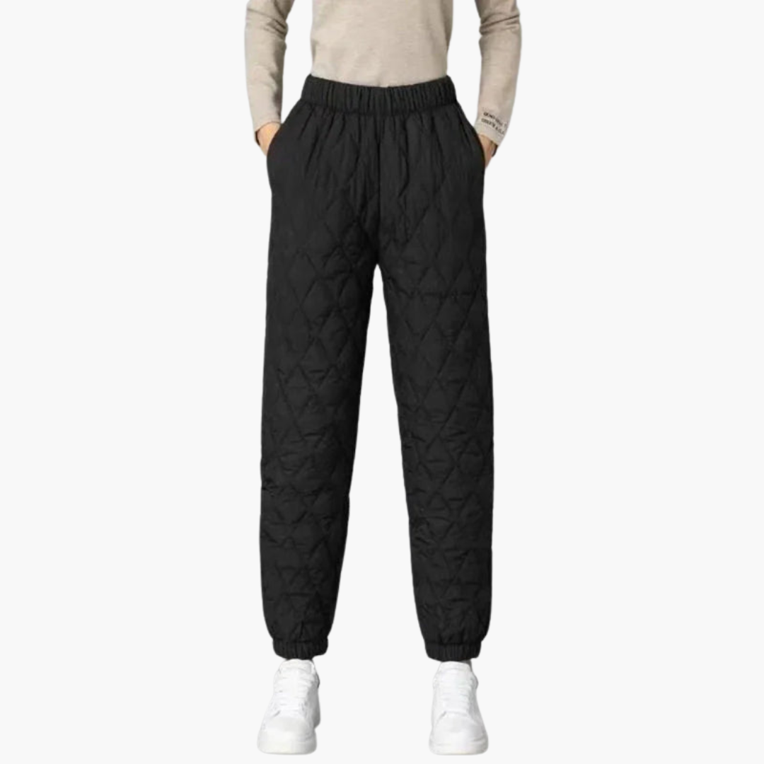 Quilted women’s jogger trousers featuring an elastic waistband and cuffed ankles