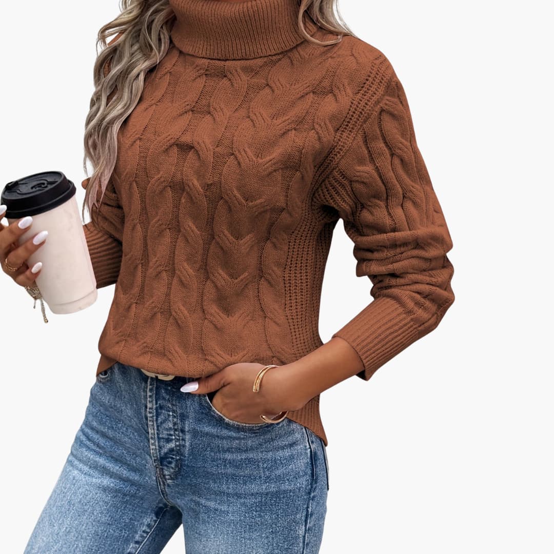 Women’s Sweater with Turtleneck and Cable Knit Pattern