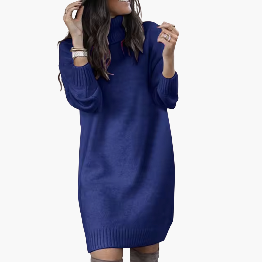 Women’s long-sleeve turtleneck sweater dress with ribbed edges